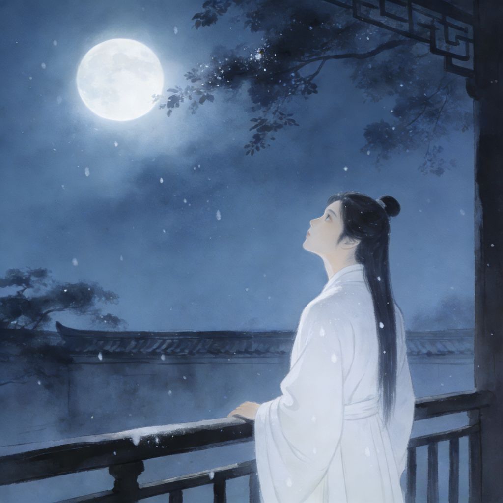 凭栏凝望月如霜,漫漫相思越院墙。
