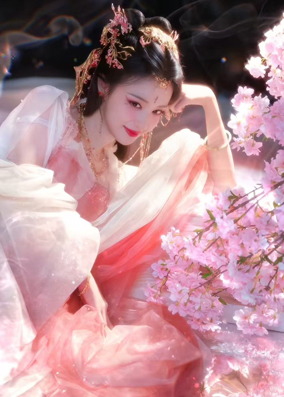 王楚然明艳外貌与这类角色形象高度契合,拥有172cm的高挑身材,她的五官明艳大气,具有强烈的视觉冲击力,被称为“浓颜系”美女。她的高挑身材和大气五官,能够支撑起“妖妃”所需的视觉冲击力和气场,一颦一笑都带着勾魂摄魄的魅力。剧中各种夸张的发饰、鲜艳的纱裙在她身上都好好看,真正的肤白貌美明艳动人。