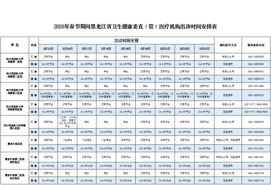 黑龙江发布春节健康信息提示!附各大医院出诊时间