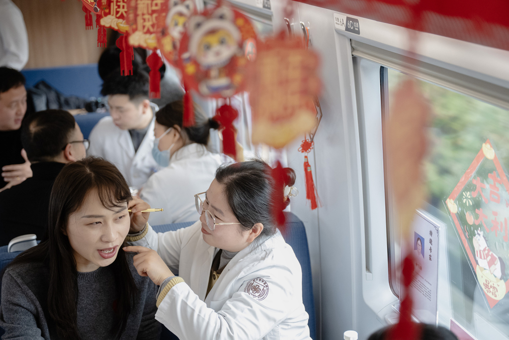 另一种暖心服务也在列车上静静流淌。2月2日春运首日,G7467 次列车餐车变身 “健康文化客厅”,中医问诊、写福送福、快板表演、互动抽奖等多元服务,让回家路满载关怀与年味。