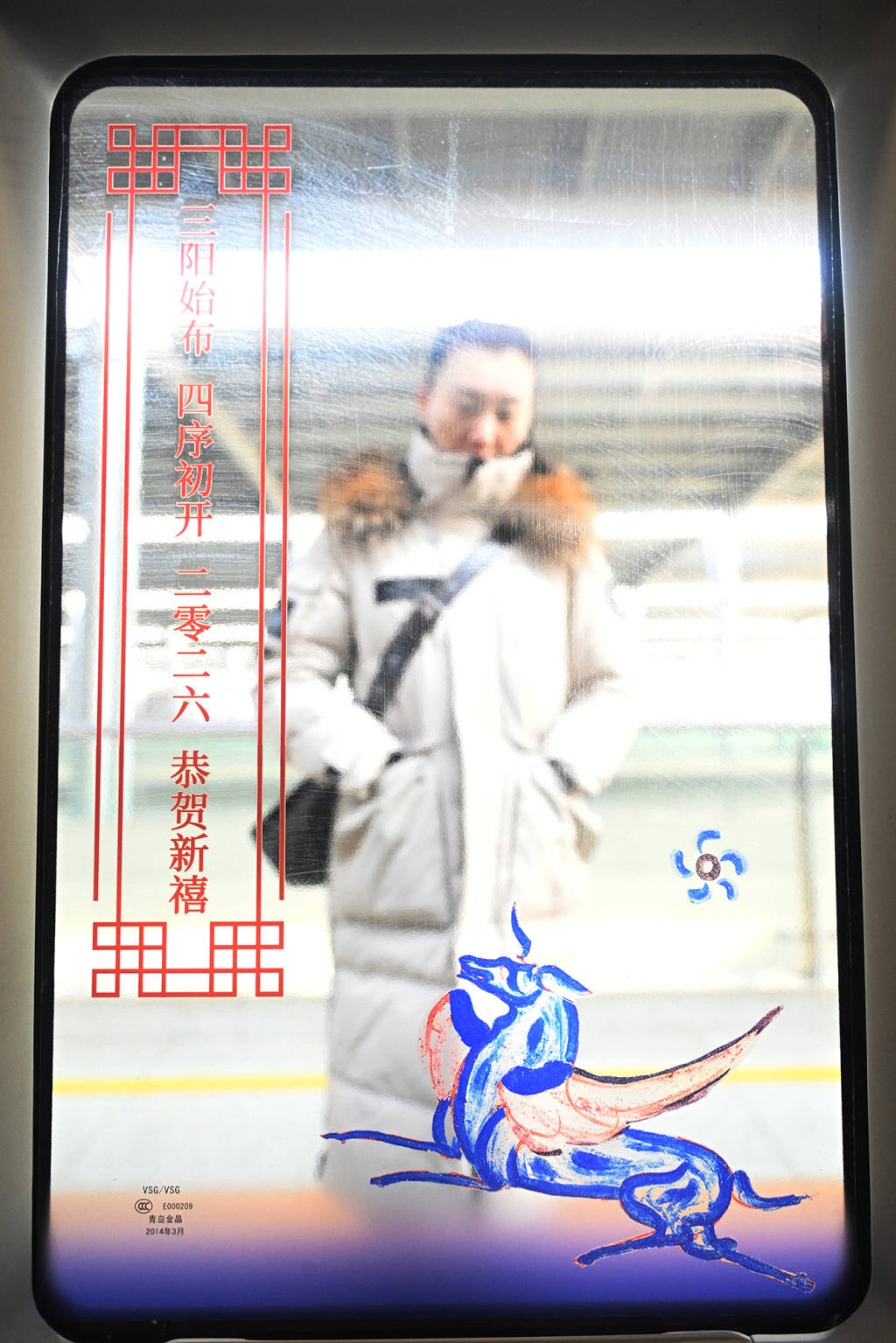2月9日,旅客从G848次列车外参观敦煌壁画中的马元素。