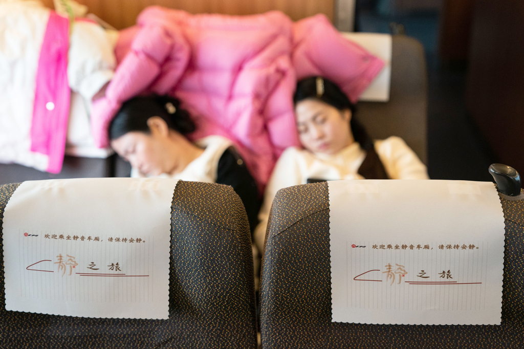 2月1日,乘客在G54次列车静音车厢内。
