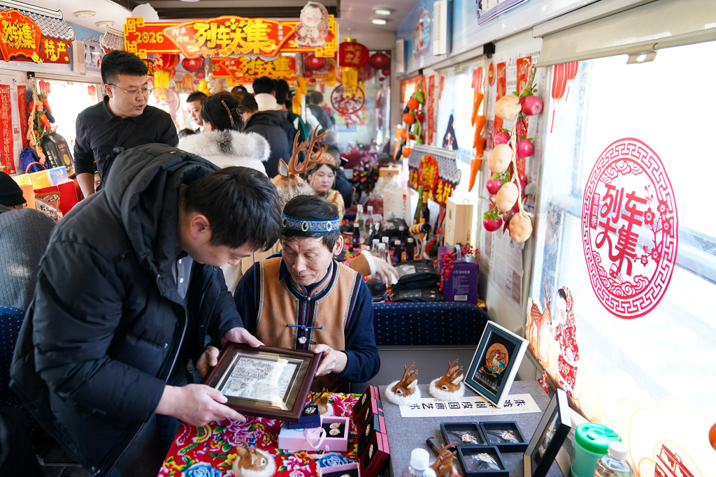 2月4日,2026年首趟 “列车大集”K7103次从哈尔滨始发,驶向大兴安岭腹地加格达奇。“列车大集开集喽!”列车长一声吆喝,瞬间点燃车厢氛围。塔河山珍、漠河冻货、甘南杂粮、北大荒鲜食玉米、椴树蜜、大枣煎饼、冻梨汁…… 龙江特色好物齐聚一堂,让返乡旅客与游客足不出车厢,就能一站式品尝地道黑土优品。