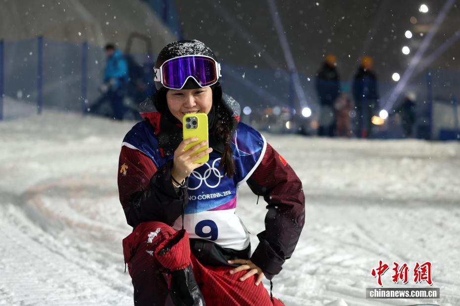 当地时间2月12日,2026年米兰-科尔蒂纳冬奥会单板滑雪女子U型场地技巧决赛在利维尼奥雪上公园举行。中国选手武绍桐以78.00分获第7名。图为赛后武绍桐与父母视频通话。