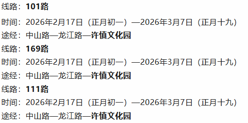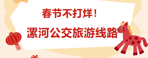 为方便广大市民春节期间出行游玩,漯河市公交集团特别推出春节公交旅游线路,覆盖许慎文化园、雪霁花海、漯湾古镇、神州鸟园等热门景点,正月初一到正月十九,天天发车,上午8点起跑,让你不用开车、不用找车位,轻松出门,畅游漯河!