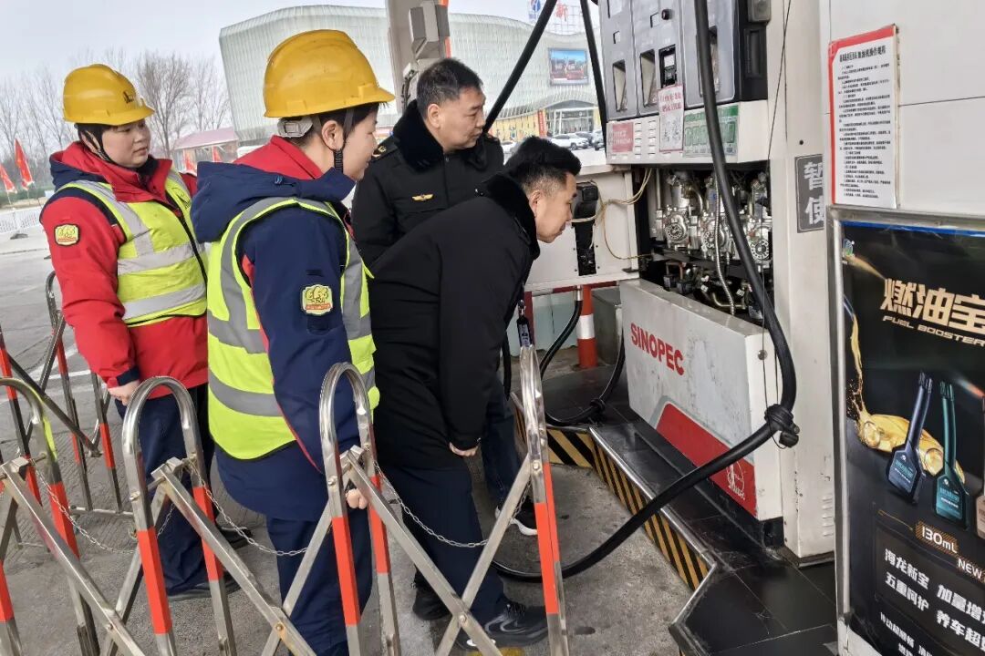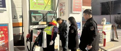 2月11日,南阳桐柏县市场监管局执法人员在埠江镇华蓝蓝天加油加气站开展加油机计量检查