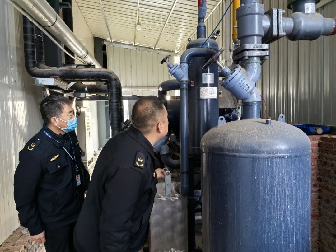 2月11日,安阳内黄县市场监管局执法人员在六村乡检查冷库压力容器使用情况