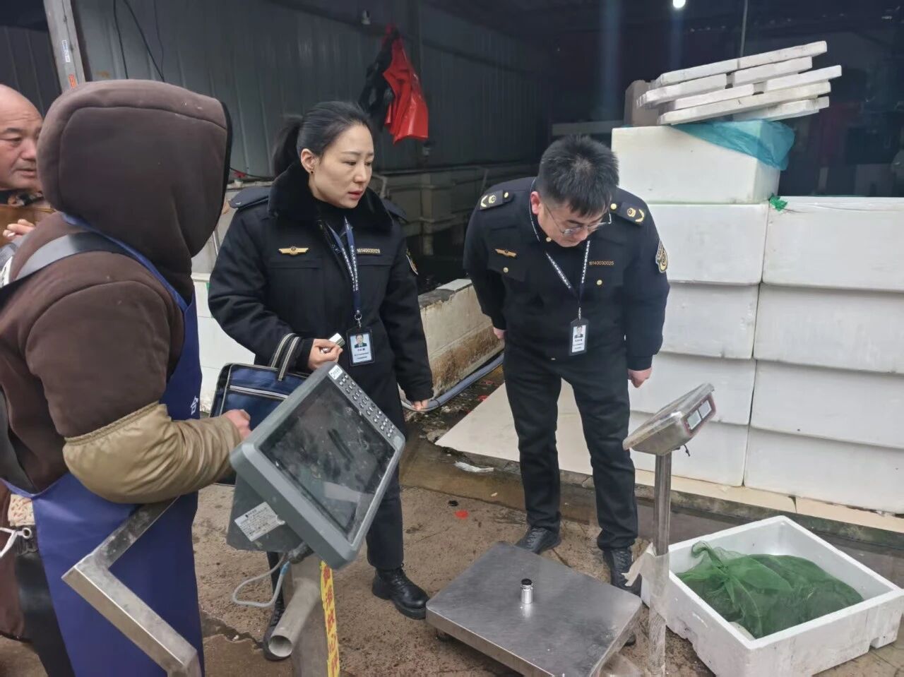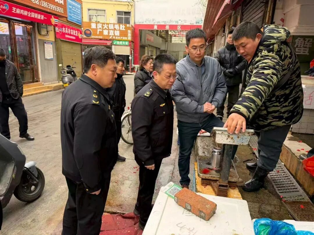 2月9日,周口市市场监管局临港开发区分局执法人员在黄淮农贸市场开展计量监督检查