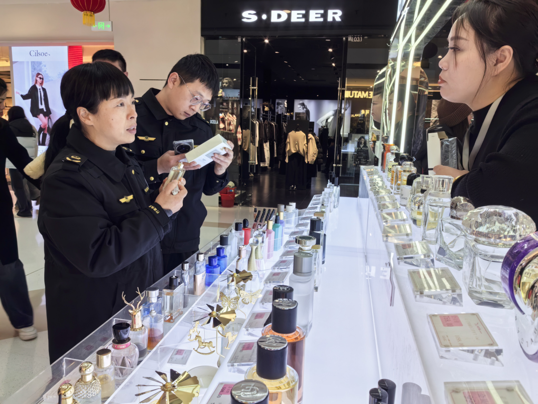 2月12日,濮阳市市场监管局开发区分局执法人员在万达广场开展化妆品检查
