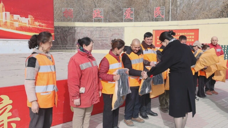 2月11日,库车市人社局组织开展春节前走访慰问活动,为环卫工人、快递外卖配送员及企业职工送去节日祝福与暖心物资。通讯员 歹淑丽 摄