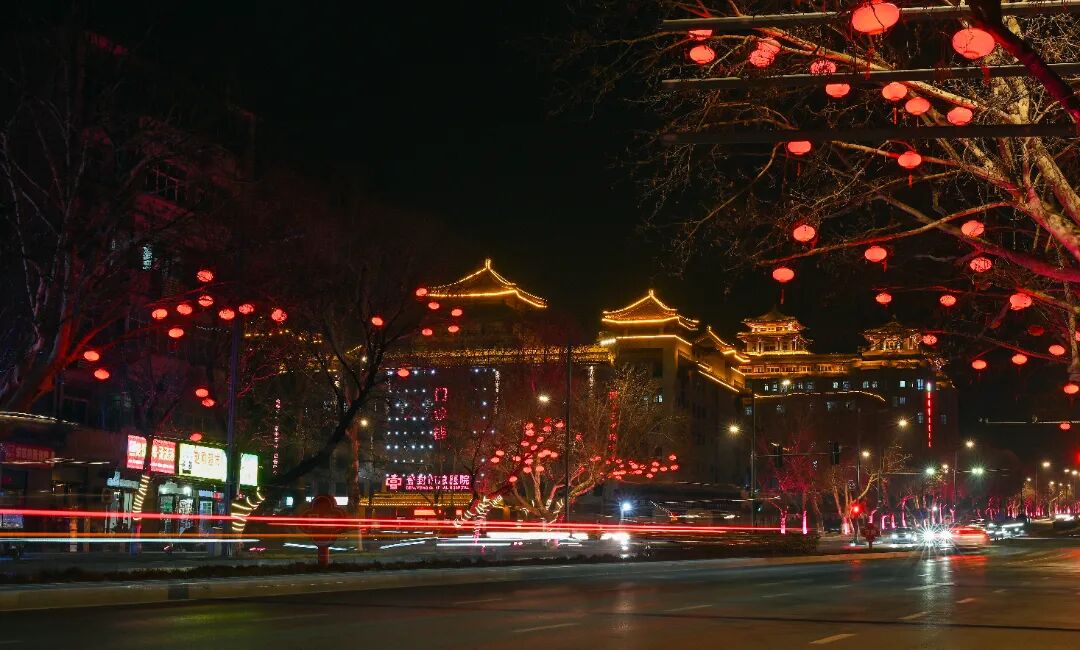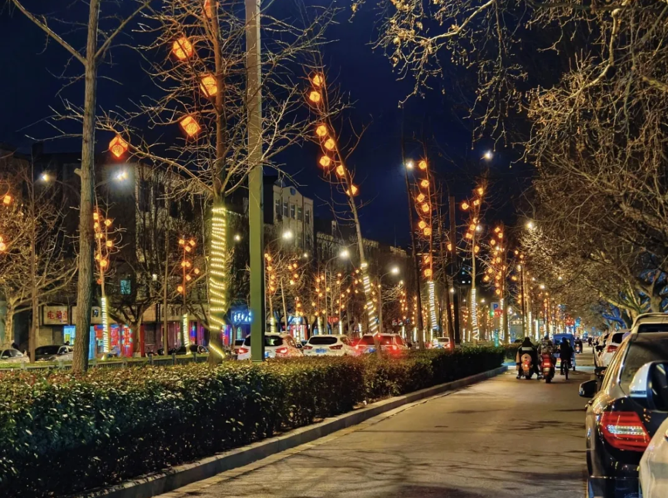 灯光亮起的瞬间,白日里的车水马龙多了几分浪漫,行人放慢脚步,或驻足观赏,或拍照留念,光影交错间,浓浓的年味在街头悄然蔓延。