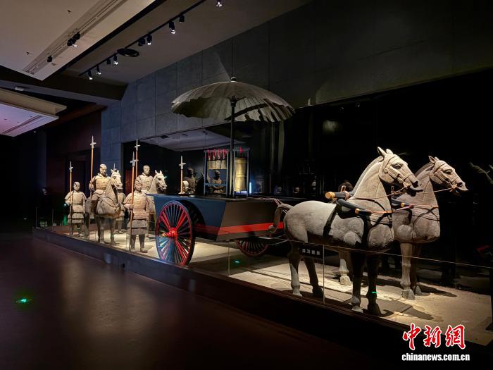 2月3日,在南昌汉代海昏侯国遗址博物馆内,展示着王侯出行的场景。李韵涵 摄