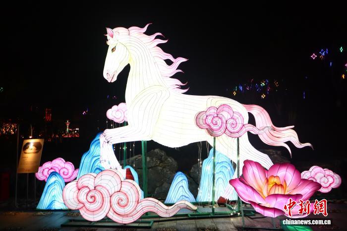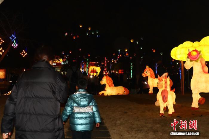 2月7日晚,浙江平湖,造型可爱的小马花灯吸引民众。春节临近,当地“金平湖灯秀”深挖本土文化根脉,45组主题灯组搭配千盏氛围灯,以平湖非遗、在地文化等为视觉与内容基底,打造可感知、可体验的沉浸式光影叙事,民众穿梭其间感受浓浓年味。中新社记者 黄彦君 摄