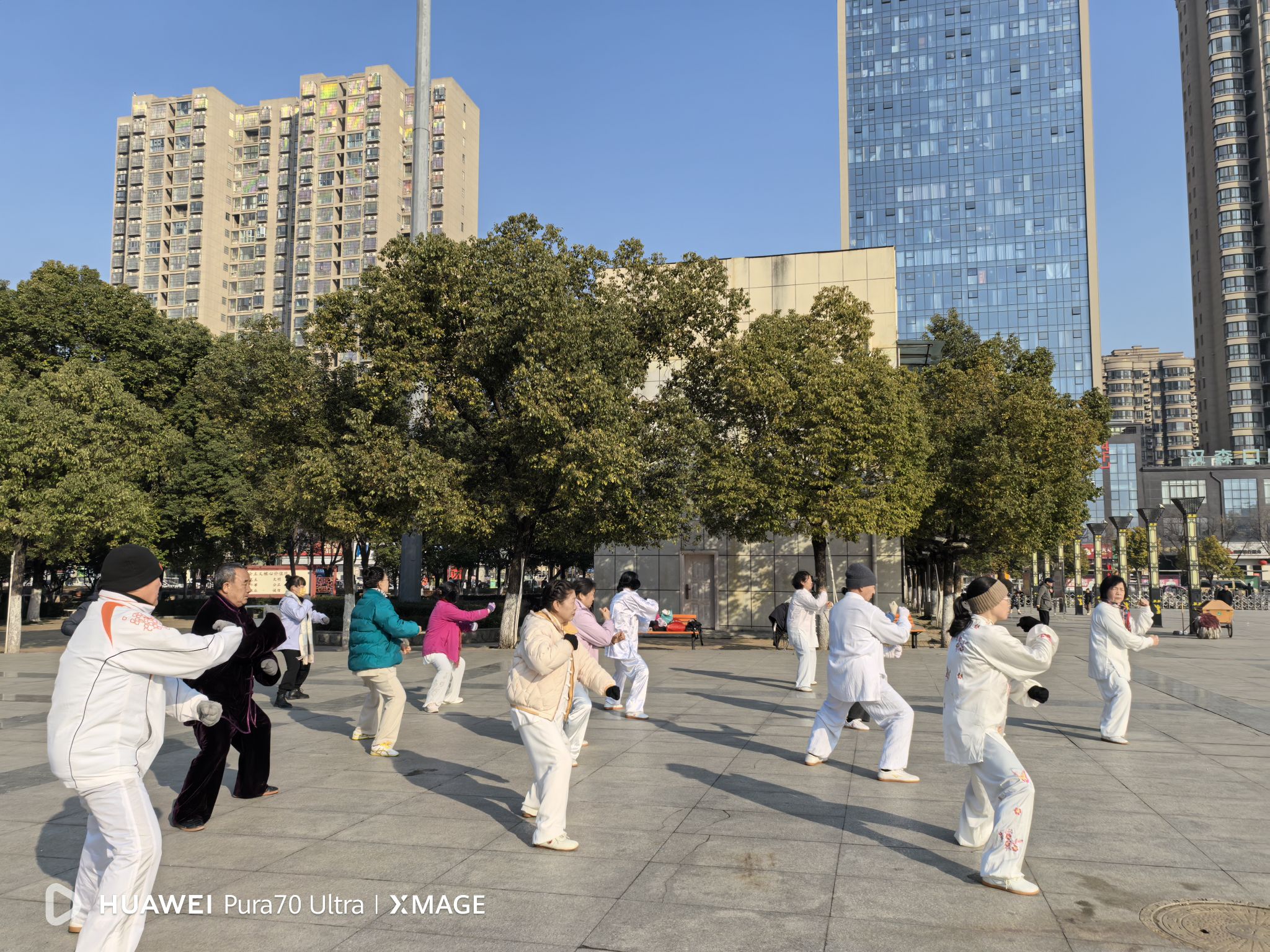 拳友们在认真练习陈式太极拳。
