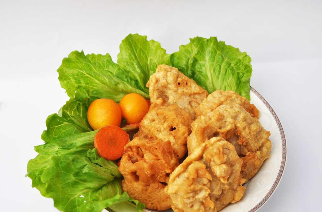 1. 炸莲夹(炸藕夹):莲藕夹肉馅挂糊炸,外酥里嫩,可直接吃或蒸扣碗。