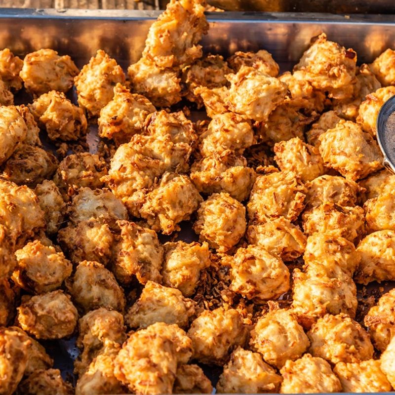 3. 炸丸子(肉/绿豆/萝卜):寓意团圆,可干吃、烩菜、做汤。