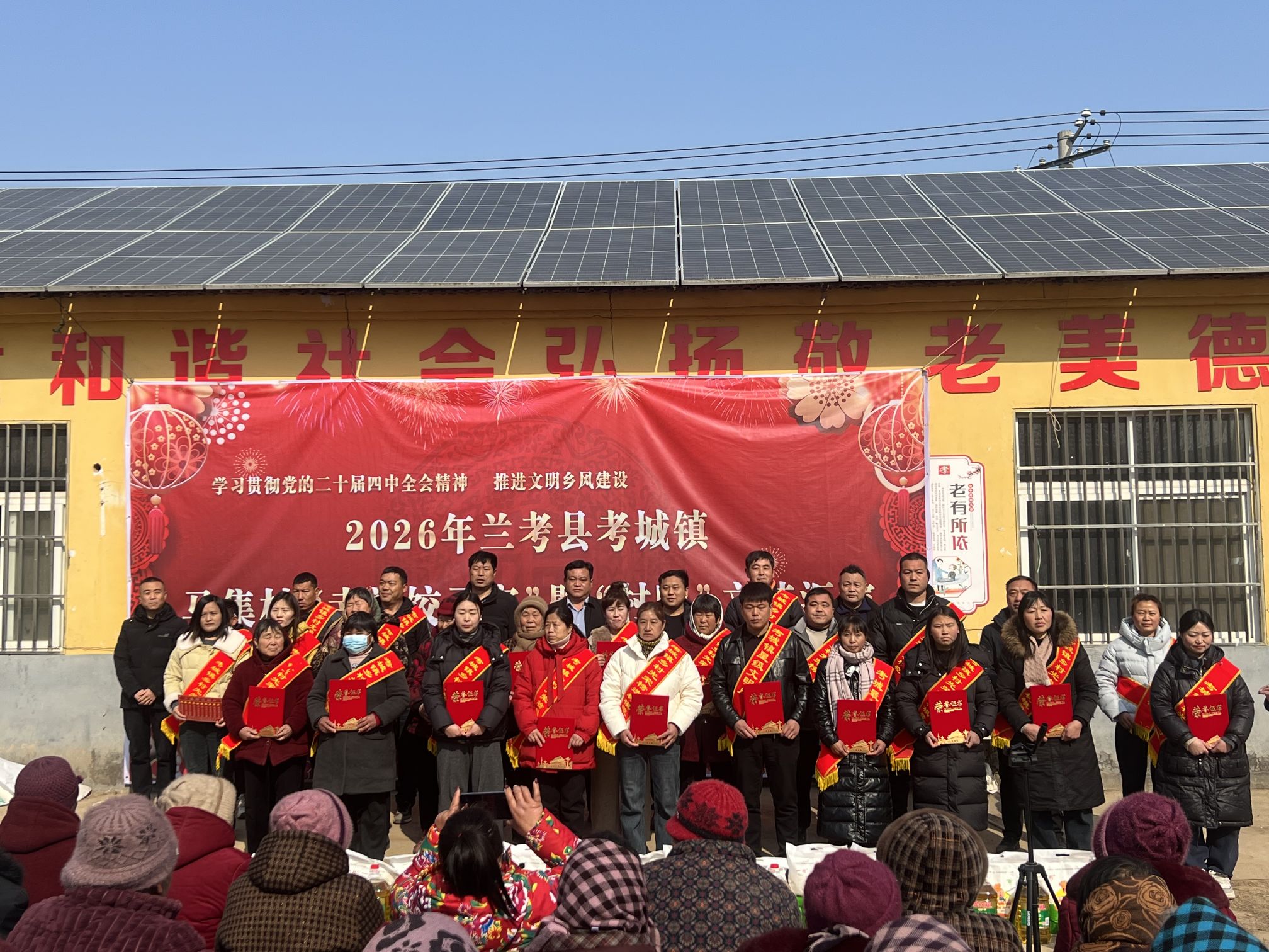 为进一步弘扬中华优秀传统文化,丰富人民群众精神文化生活,2月7日,以“马跃新春 村晚欢歌”为主题的乡村“村晚”在兰考县考城镇马集村盛情上演。村晚现场,锣鼓喧天,歌舞飞扬。活动在大鼓《好运连连》中拉开帷幕,广场舞《中国美》、歌曲《人生不过三杯酒》《幸福拍手歌》、腰鼓《爱我中华》、手花舞《山河美》《中国大舞台》、豫剧《老百姓心中有杆称》以及民间传统表演《抬花轿》等精彩节目轮番上演,赢得现场阵阵掌声。