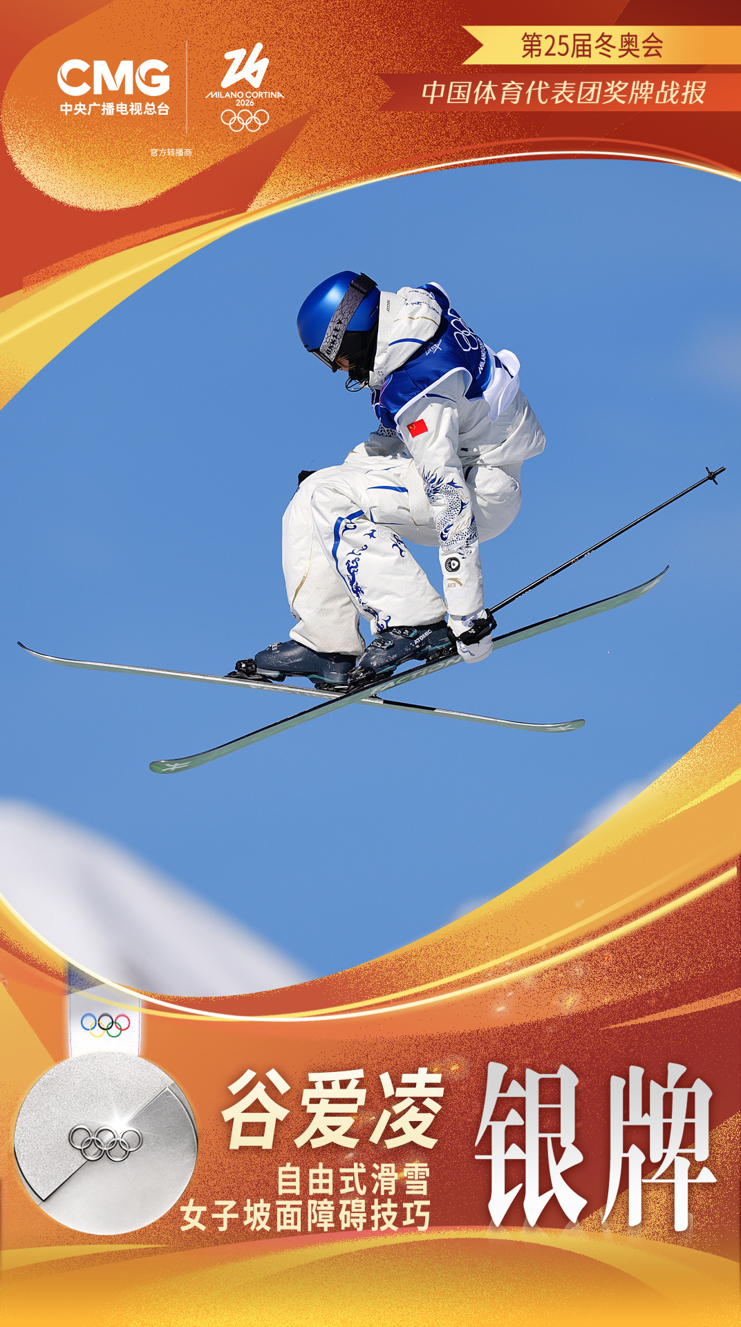(米兰冬奥会)谷爱凌摘自由式滑雪女子坡面障碍技巧银牌