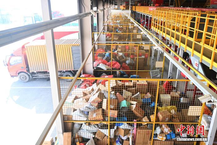 图为兰州市一快递物流转运中心内,工作人员进行分拣装车工作。李亚龙 摄