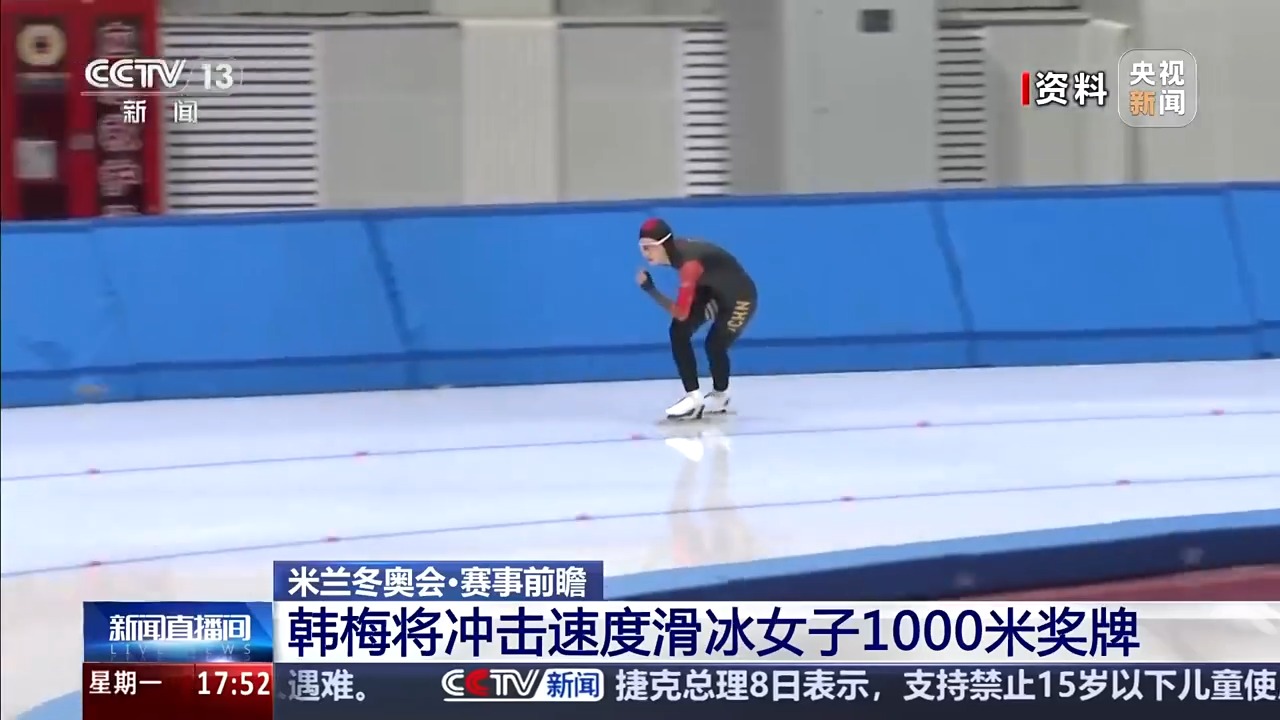 在米兰进行的冰上项目,速度滑冰将进行女子1000米的决赛,包括亚冬会冠军韩梅在内的三名中国选手参赛,这个赛季状态稳定的韩梅将力争一枚宝贵的奖牌。