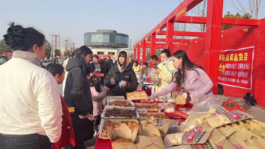 村民赵先生说:“长水的集可大,所有的年货在这里都可以买全,不用再跑到县城了。”村民赵先生手里提着刚买的干货和春联,脸上洋溢着满意的笑容。