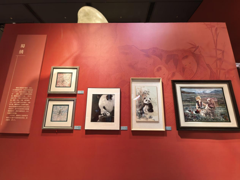 传统美术和技艺展区内,一件件非遗佳作匠心独运,令人目不暇接、叹为观止。蜀绣《熊猫·小憩》针脚细密、栩栩如生,憨态可掬的熊猫跃然绢上;湘绣《青铜器何尊》配色沉稳、笔触精妙,尽显青铜礼器的古朴庄严;南京云锦木机织就的纹样,金线银线交织缠绕,流光溢彩、绚丽多姿;龙泉青瓷温润如玉的釉色,雅致天成,尽展东方美学的独特韵味。