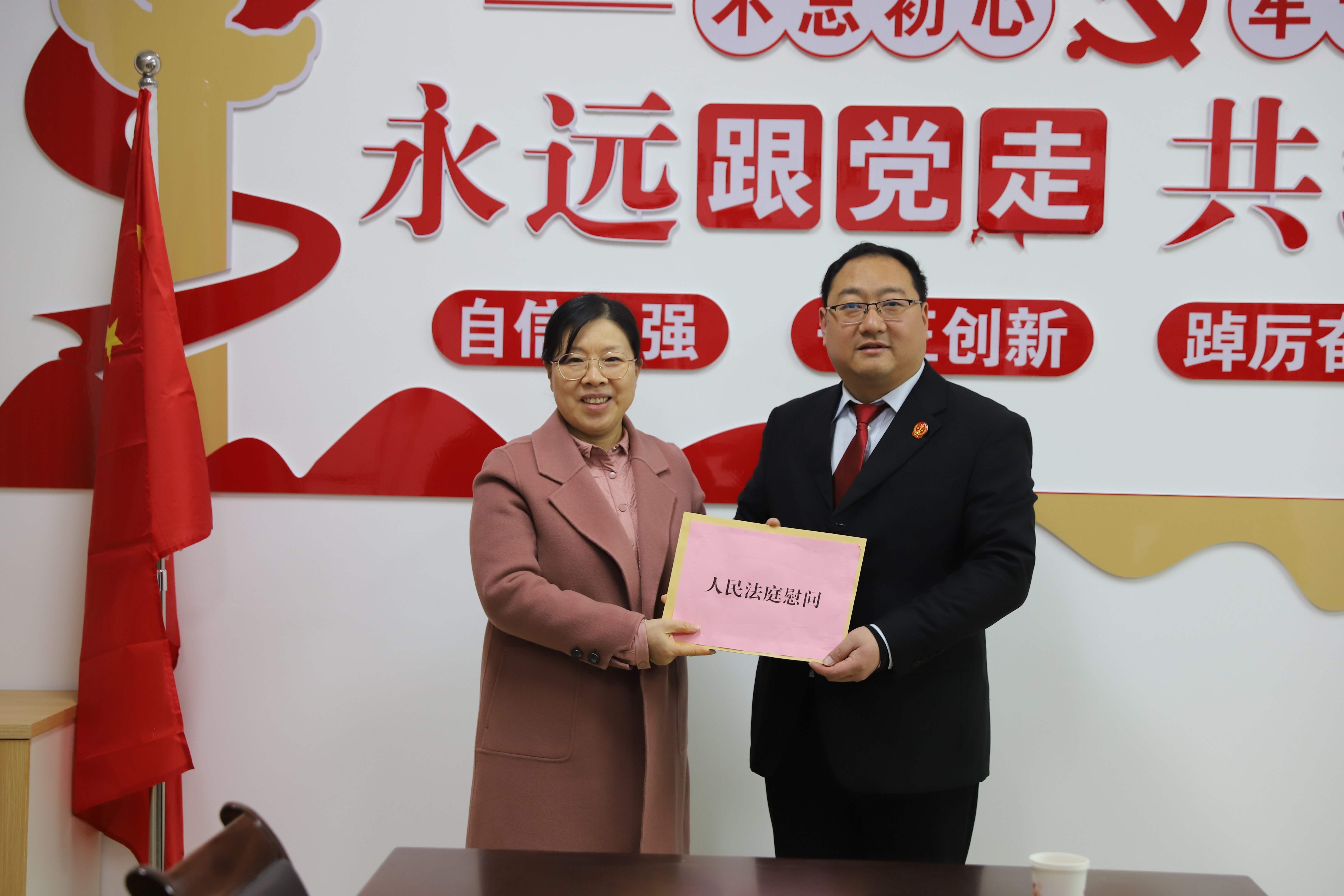 2月6日,南阳市中级人民法院党组成员、副院长孟宪英,研究室主任吴贺明到安皋法庭走访慰问,卧龙区法院党组副书记、常务副院长刘夏莲,安皋镇党委书记秦芳芳等陪同慰问。