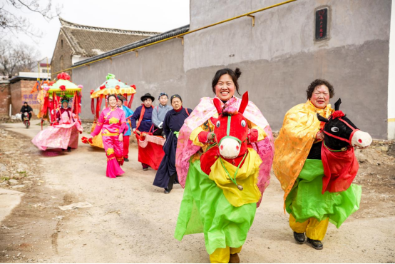 新春将至,文脉愈浓。今年入冬以来,刘学有更是亲力亲为、忙前忙后,不仅亲手设计制作了劳司官游春的推车,还反复打磨、精心编排游春活动流程,只为让节目更具观赏性和乡土味。该节目在腊八节饺子宴上首演即获满堂喝彩,腊月十七立春当天,文艺团更是走出村落、走进田间地头开展实地游行——鸣锣开道在前,竹马旱船、老汉推车省亲、古乐韵铜器社依次登场,壮观又接地气的场面,吸引了周边村民纷纷驻足观看、拍手叫好,让非遗文化走进群众身边。