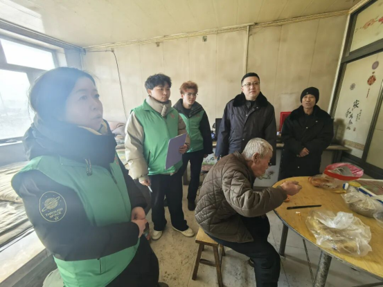 走访过程中,前郭县退役军人事务局主任于添与财务处负责人楚丽宇与各家庭成员亲切交谈。他们俯身握住老人布满老茧的手,详细询问他们的身体状况、医疗保障、子女就学及生活保障等情况,认真倾听他们的生活诉求与实际困难,鼓励他们保持乐观心态,勇敢面对生活挑战。说着,便伸手摸了摸老人身上的衣服厚度,又仔细查看家中的取暖设备,叮嘱老人注意冬季防寒保暖与居家安全。