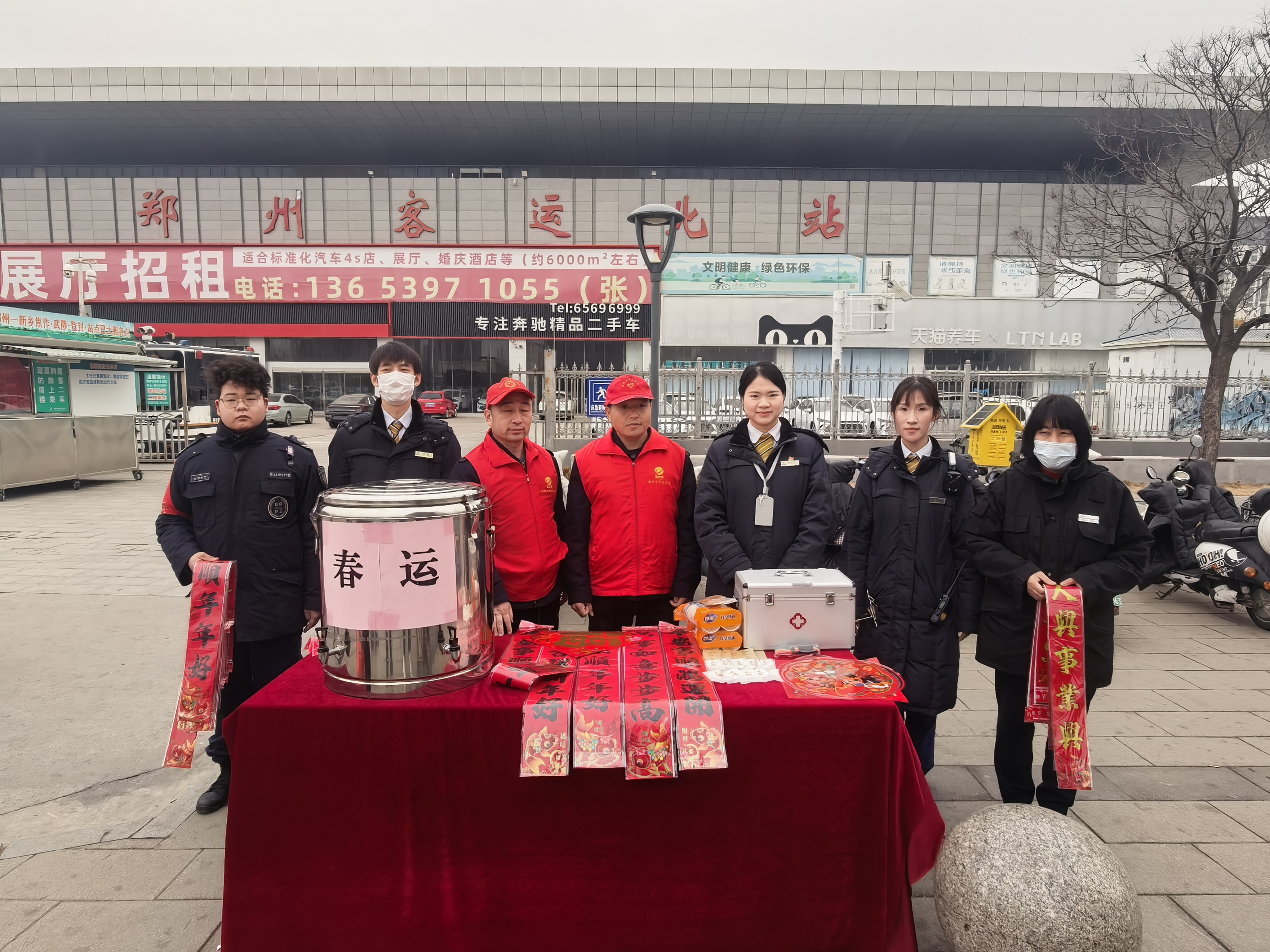 2月10日农历小年,为保障春运期间市民出行安全、有序、便捷,郑州公交苏师傅党员志愿服务队联合郑州地铁晶晶服务先锋队,在郑州长途客运北站开展“爱心服务暖归途 平安护航春运路”主题活动,为奔波的旅客送上一份新春的温暖。