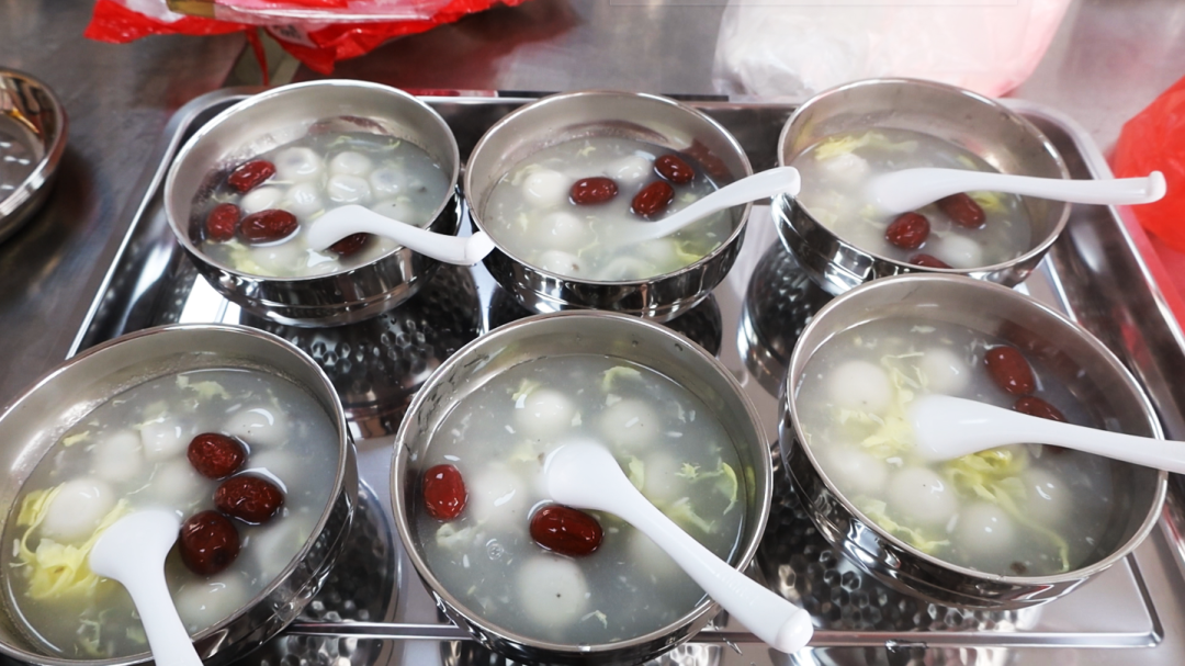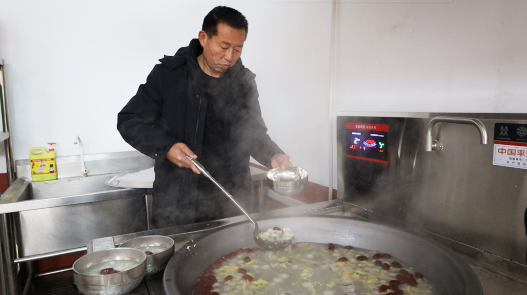 食堂操作间里,志愿者和厨师们忙着煮制象征团圆美满的汤圆。不一会儿,一碗碗香甜软糯的汤圆被端到老人面前,大家围坐在一起尝美味、聊家常,脸上洋溢着幸福的笑容。