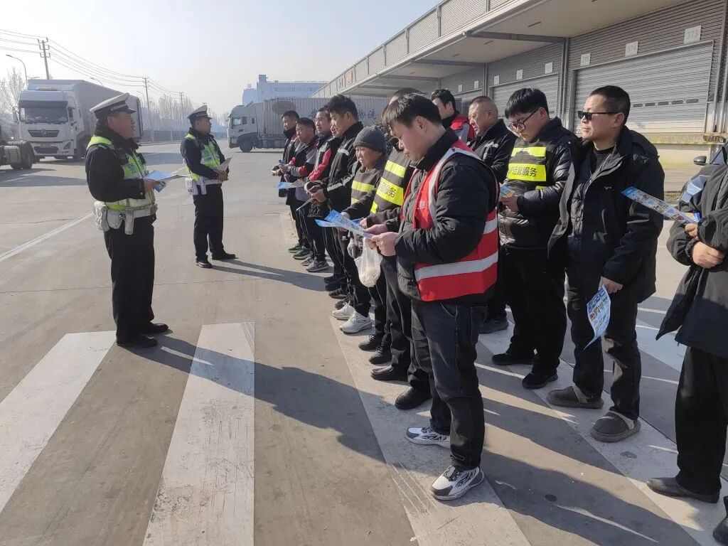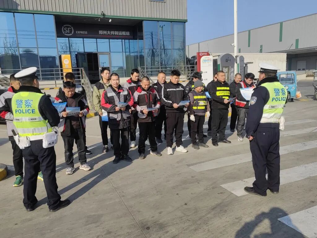 近日,新郑交警组织警力深入辖区物流企业,开展“文明交通,礼行天下”春运交通安全专题宣传活动,为企业从业人员送上“安全锦囊”,拧紧春运运输“安全阀”。