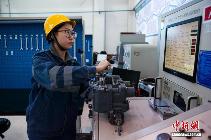 图为汝佳仪测试自动制动阀性能。中新社记者 薛蒂 摄