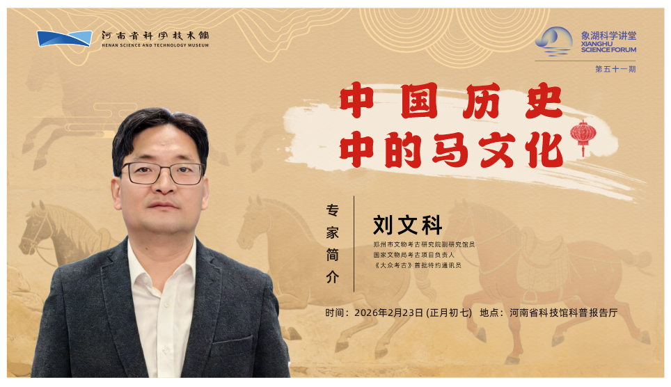 马年新春将至,象湖科学讲堂以“马”为引,诚邀文博专家与动物专家携手打造“文化马”与“科学马”双主题系列讲座,邀您在知识与想象的交融中迎祥纳福。