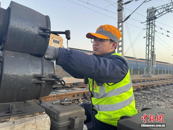 中新网陕西榆林2月13日电 (党田野 刘盼利 杨紫萌)12日傍晚,包西线牛家梁站气温降至零下12摄氏度,寒风席卷站场。中国铁路西安局集团有限公司绥德工电段牛家梁工电工区工班长张成成将耳朵紧贴转辙机箱盒,捕捉设备联动时的“咔嗒”声——这一信号设备正常运转的标识,是铁路运输安全的重要保障。