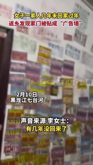 女子一家人几年未回家过年返乡,发现家门被贴成“广告墙”#万万没想到#小广告4