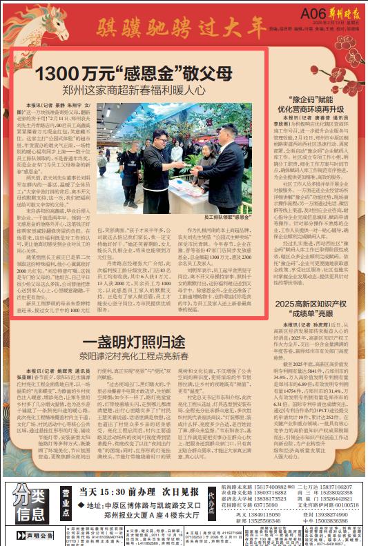 “这一万块钱准备寄给父母,翻新老家的房子用!”2月11日,郑州农夫刘先生丹青路店内,00后员工高鑫威紧紧攥着万元现金红包,笑意藏不住。这家主打“公园式体验”的超市里,年货置办的烟火气正浓,一场特别的暖心福利同步上演——数十位员工排队领取的,不是普通年终奖,而是企业专门为员工父母准备的新春“感恩金”。