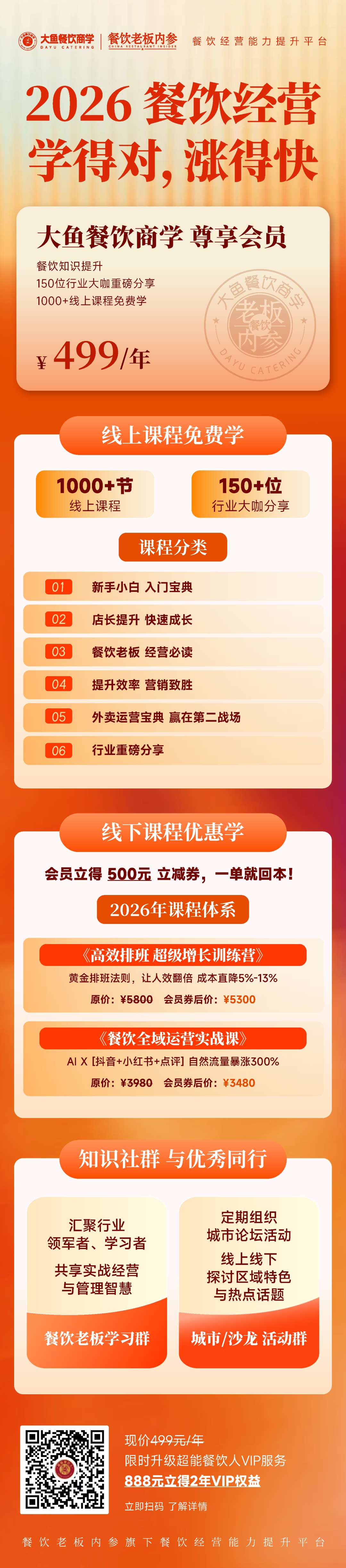 只要499元,不是一次性听课,而是为餐饮人准备的一套长期可用的学习与成长支持。在这里,你可以系统性地补齐认知,也能随时针对具体问题找到参考。