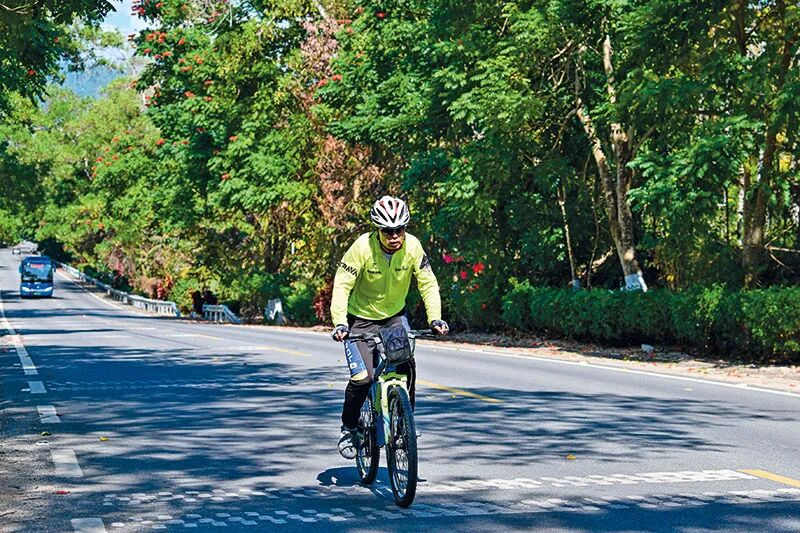 游客在位于海南的环热带雨林国家公园旅游公路保亭段骑行(2025年1月30日摄)蒲晓旭 摄