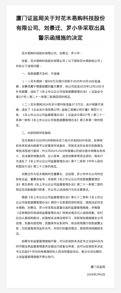 对此,中国证监会北京监管局决定对北京南天智联信息科技股份有限公司及郑煦、赵起高、陈键、李广艳采取出具警示函的行政监管措施,并记入诚信档案。