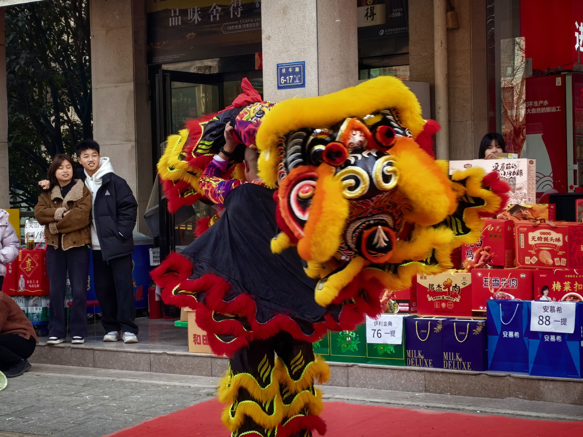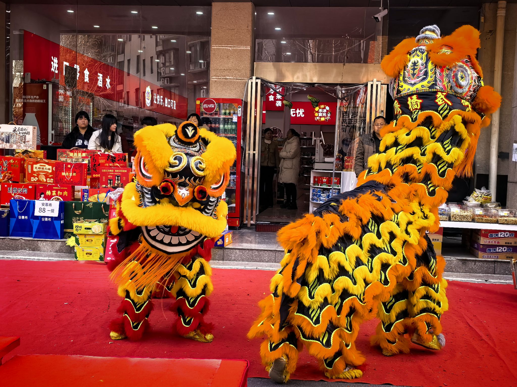 随着马年春节临近,各类民俗展演陆续启动,醒狮表演作为传统年味符号,为郑州街头增添了浓郁的节日氛围。