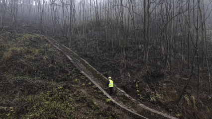 K9看守点四周天气变幻莫测,转眼间云雾已笼罩了整个山谷。张本祥像往常一样上山巡查,仔细确认危石有无松动坠落的风险。
