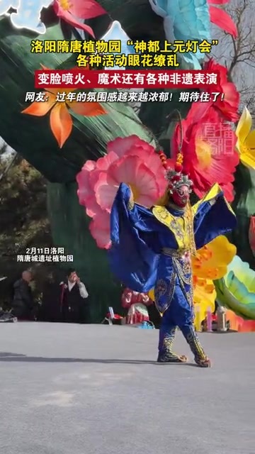洛阳隋唐植物园“神都上元灯会”各种活动眼花缭乱,变脸喷火、魔术还有各种非遗表演,网友:过年的氛围感越来越浓郁!期待住了!#神都上元灯会双园年味十足 #来王城公园寻找你的年味记忆