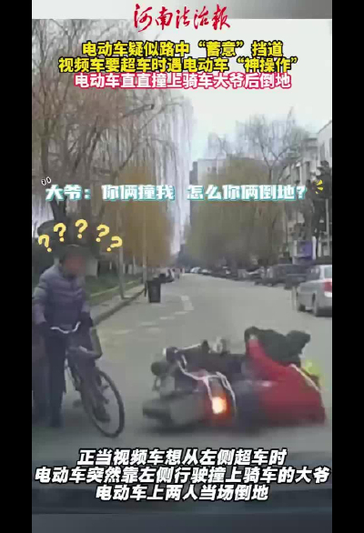 新电动车疑似“蓄意”挡道 视频车要超车时遇电动车“神操作”