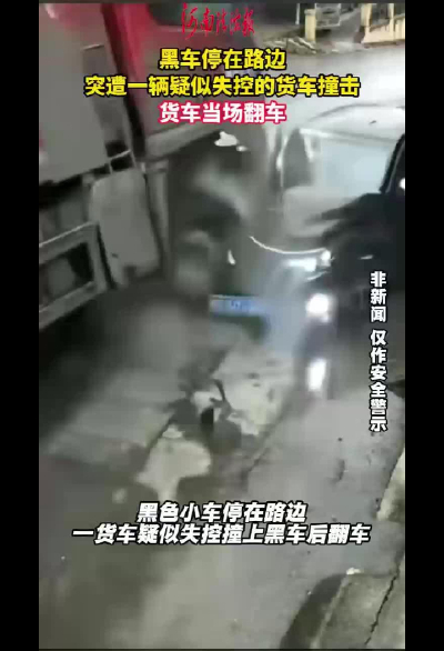 黑车疑似操作不当突然变道与货车相撞 视频车惨遭波及