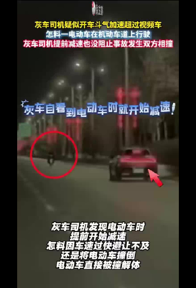 灰车司机疑似开斗气车忽然加速 与机动车道行驶的电动车相撞