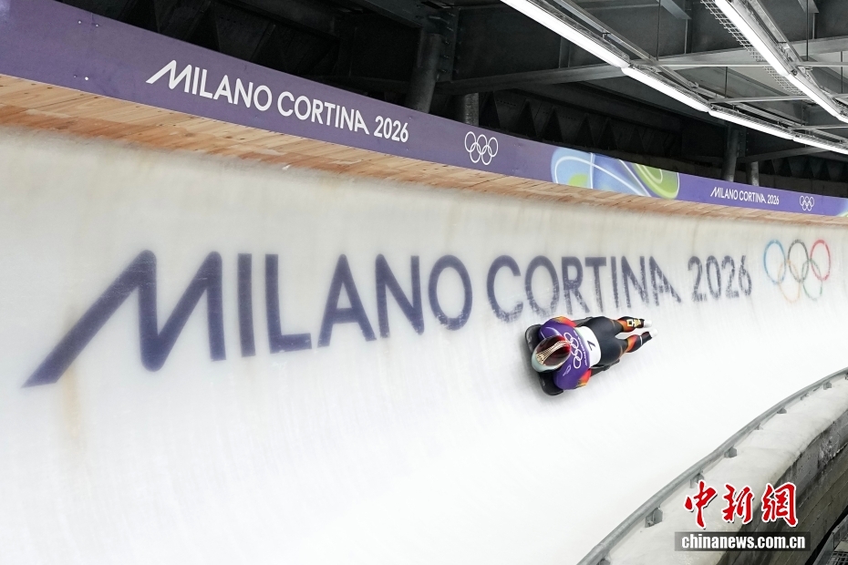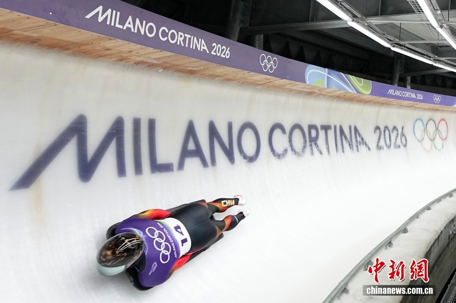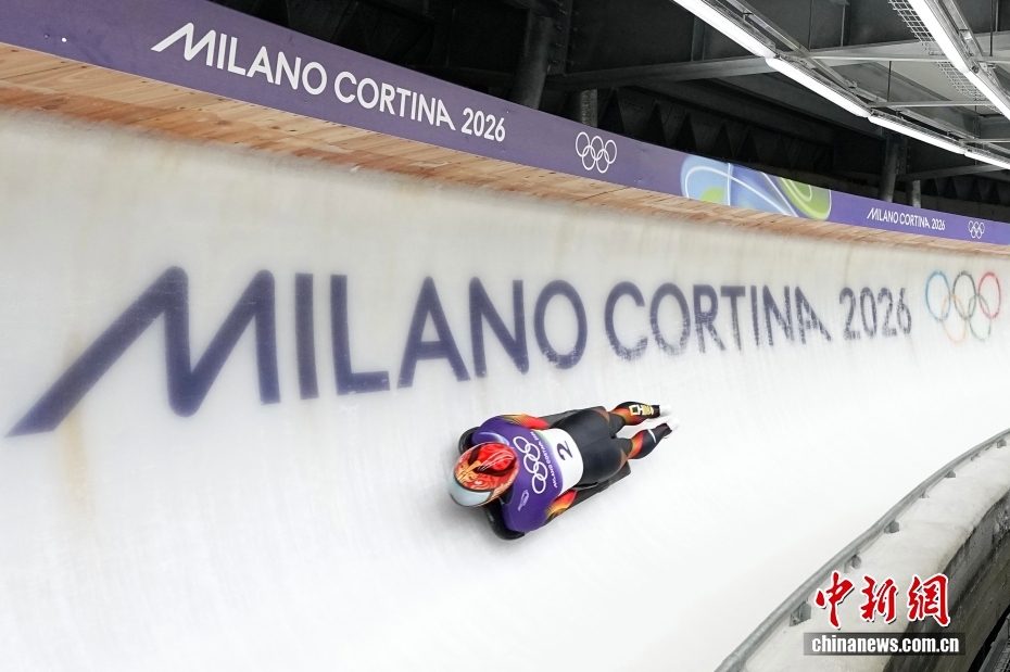 当地时间2月13日晚,2026年米兰-科尔蒂纳冬奥会男子钢架雪车比赛在科尔蒂纳滑行中心继续进行。中国队选手林勤炜最终以总成绩3分45秒61名列第8。图为林勤炜在比赛中滑行。