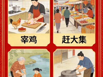 这天除了要宰杀自家的家禽,还要上店赶集、集中采购。春节期间的“上店赶集”,虽然也有与往日集市贸易、购缺卖余的内容,但更多的是买卖年节物品,以及赠送小孩子的各种礼品,春节所需物品都在置办之中。因此,这天各地的集市都十分热闹。其实说白了就是:“今天!置办年货的好日子!”