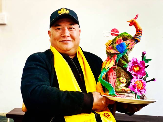面塑的起源,可追溯至汉代以面代牲的祭祀传统。 清代末年,卢氏城隍庙会上,高哲贵老人曾捧出簸筐大的花馍,三十斤面团在烈日下蒸腾出信仰的热气。 这些面团经艺人指尖翻飞,化作鱼戏莲、双龙戏珠的灵动,或凝为松鹤延年、干枝梅的坚韧。 祭祀面塑分“死花”“活花”“靠山”三类,每一类都承载着山民对自然的敬畏——活花如游龙惊鸿,死花似静物写生,靠山则寓意守护与依靠。