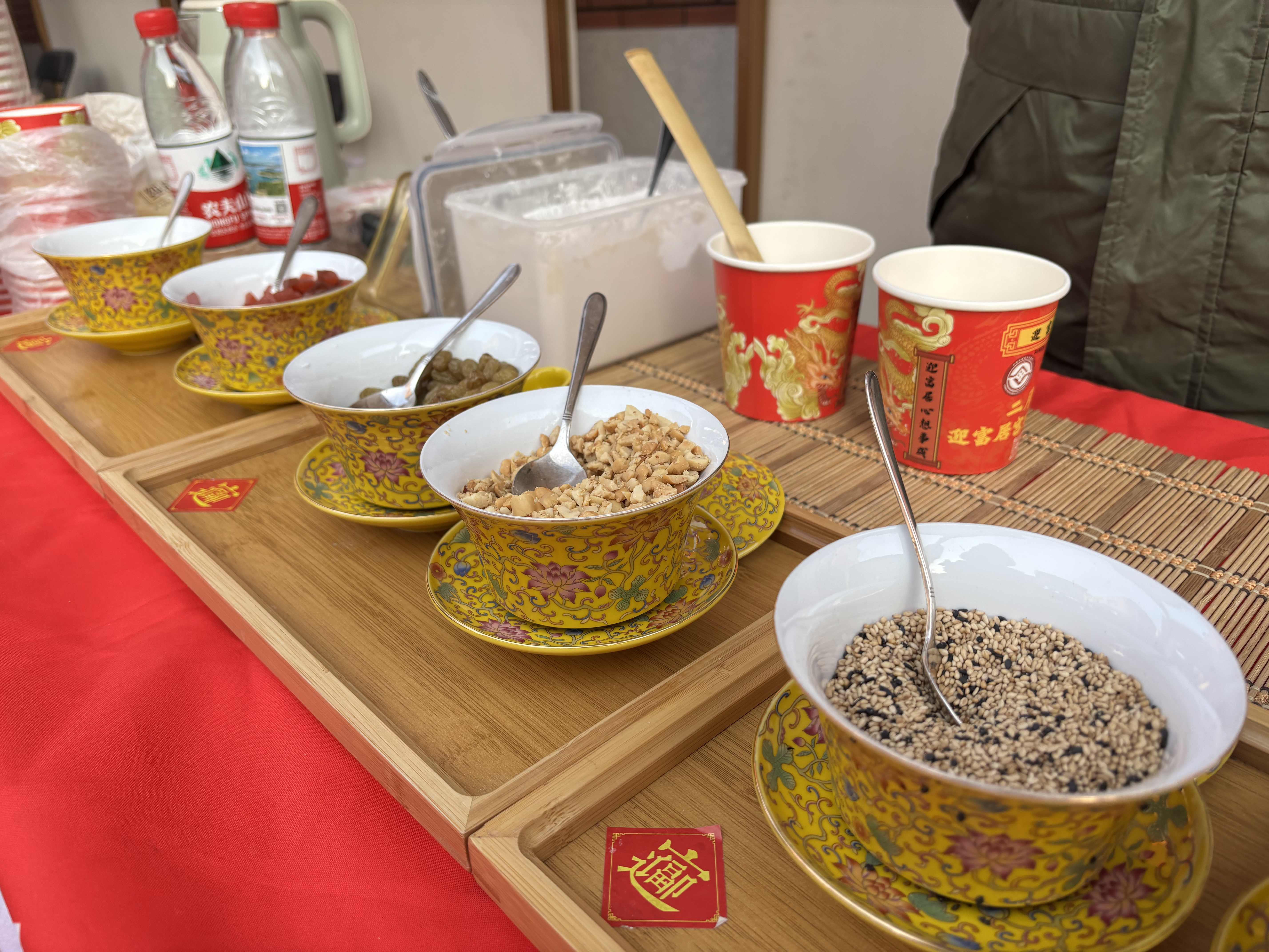 “都是最天然的食材,自己加工制作的。”杏仁茶非遗传承人高山说,他始终坚守古法工艺,选用最原始的食材手工制作,每一味食材都藏着吉祥寓意:青红丝象征龙凤呈祥,芝麻寓意节节高升,坚果果仁承载着平安顺遂。一碗热气腾腾的杏仁茶,香甜醇厚、温润适口,承载着老郑州的舌尖记忆,也藏着中国人对新年的美好祈愿。
